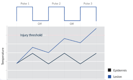 L'énergie lumineuse est délivrée pendant les impulsions et le tissu se refroidit pendant les délais.